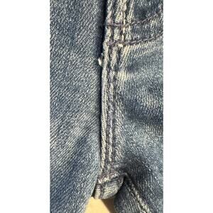 There’s distressing around the pockets, that’s the way they are supposed to be. There is also some light rippling under the zipper, please see last picture. Rippling is very light. Jeans are in great pre-owned condition.