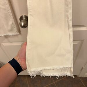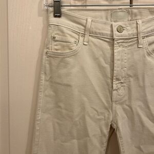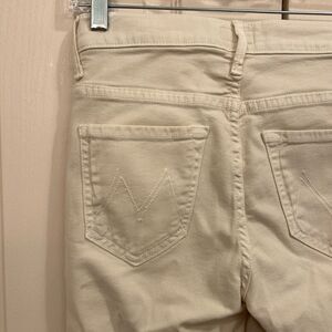 MOTHER The Insider Crop Step Fray Jeans in So Far Gone (Cream/Tan), Size 25