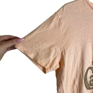 Mother California Super Bloom light peach graphic tee features a colorful floral graphic and glittery gold text.