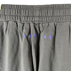 MOTHER The Knock Out Ankle Jogger Sweatpants in Faded Black. "Move It" spellout on rear. A contrast tie matches the motivating message stitched across the back of these cotton joggers ready for workouts or play dates. Elastic/drawstring waist. Elastic cuffs. Side-seam pockets. 100% cotton - SUPER soft luxurious feeling sweatpants material.