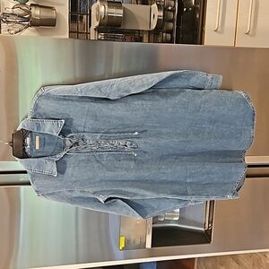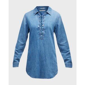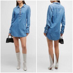 💕MOTHER💕 The Lace Up Shirt Dress ~ Salt And Lime Blue Denim Large L NWOT