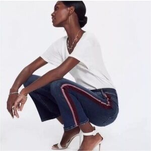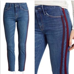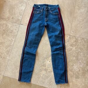 MOTHER The Looker Ankle Fray jeans in keeping love alive racer size 25 Excellent preloved condition Smoke free home Red stripe Retail $228