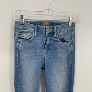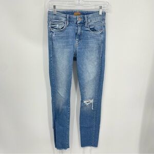 MOTHER The Looker Ankle Fray Skinny Jeans in Love Gun Distressed Light Wash 25