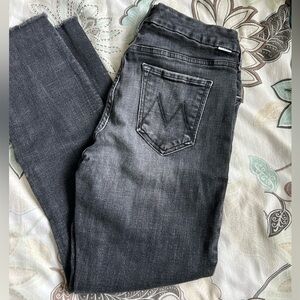These MOTHER jeans showcase a sleek gray hue and a modern ankle-cropped silhouette. Designed with a slim fit, they offer a comfortable stretch for everyday wear. The subtle faded wash adds a touch of effortless style.