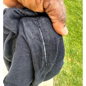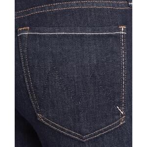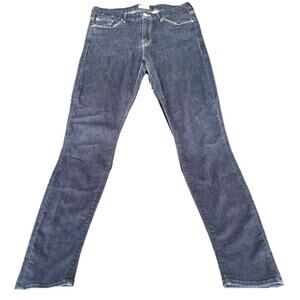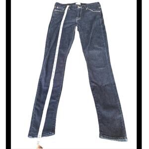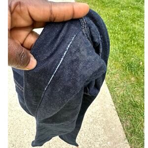 Preowned in fairly good condition in a dark wash color with some wear on the crotch as shown.