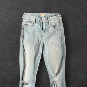 MOTHER The Looker Sacred Slit Ankle Jean in Nice Shot Paint splatter Frayed 24