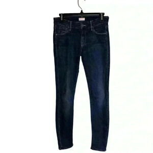 Mother Looker Jeans in Flowers From The Storm wash. Factory faded, skinny fit. Cotton blend for the perfect stretch. MOTHER is an outsider with influence. Her jeans cause a scene, hitting high at the waist and contouring close to the skin with a dark blue wash. Slip them on and start a revolution.