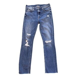 MOTHER The Mid Rise Dazzler Ankle Fray in Weekend Warrior Distressed Medium Blue Wash. Size 28.
