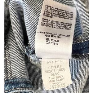 78% cotton, 16% modal, 4% polyester, 2% elastane. Made in USA. Machine wash. Unlined. Hidden side zipper closure. Lightweight denim fabric with ruffle trim. Skirt measure approx 16" in length, 14.5" waist.
