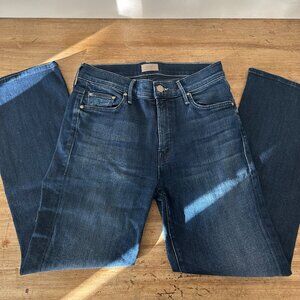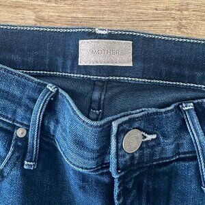 These MOTHER jeans feature a classic boot cut silhouette in a rich blue hue, offering a timeless style with a modern twist. The denim showcases a vintage-inspired look with subtle fading and whiskering details, adding depth and character. Perfect for casual outings, these jeans provide a flattering fit with a gentle flare at the hem.