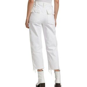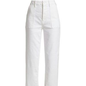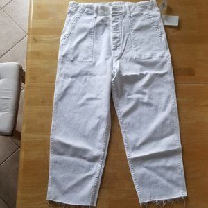 NWT MOTHER The Private Frayed Ankle Jeans, Size 32 The Private ankle jeans are designed with frayed ankles and structured patch pockets, mirroring the brand's dualistic feel. Belt loops Front patch pockets Back flap pockets Button closure 94% cotton/4% polyester/2% elastane 25" inseam 16.5" waist flat Machine wash Made in USA
