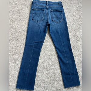 A true wear-everywhere pair from MOTHER, these classic jeans are the definition of a denim drawer staple. **Fit:** High-rise, slim kick flare fit **Features:** Zip fly and button closure, five-pocket design, ankle-length inseam, frayed detailing at the hem, comfort stretch denim **Why We โค It:** Timeless with simple sneakers or elevated with kitten heels, this pair has endless ways to wear.