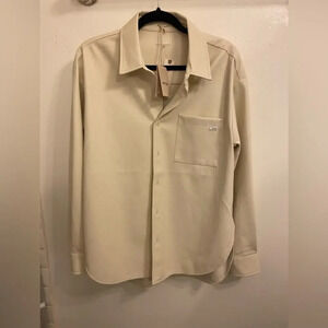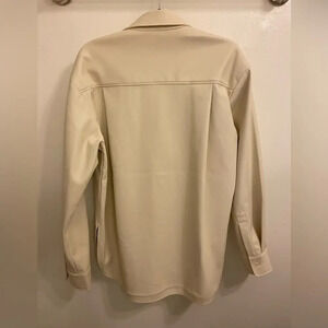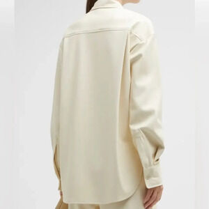 NWT MOTHER The Roomie Frenchie Button-Front Shirt Faux Leather Egret Size Medium. No flaws. Retail $275.