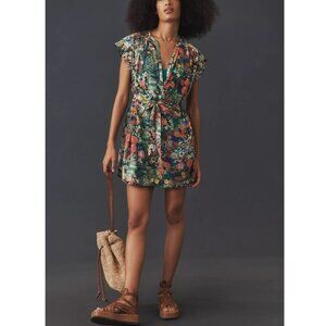 MOTHER The Slow Ride Mini Shirt Dress Floral Print Green Medium