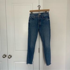 Mother jeans, Mother Stunner, Stunner Ankle Fray, Crate Digger jeans, skinny ankle jeans, raw hem jeans, frayed ankle jeans, Mother size 26, mid rise skinny jeans, stretchy denim, premium denim brand, made in USA jeans, classic skinny jeans, everyday denim, Mother denim women.