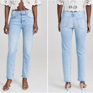 Level up your denim game with Mother Denim's The Tomcat Flood in Big Hair Don't Care! These high-rise jeans feature a straight leg, button fly, and 28.25-inch inseam for a flattering fit. Made with a touch of stretch, the light-blue wash adds subtle whiskering and fading for a trendy touch.