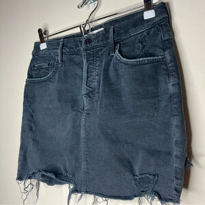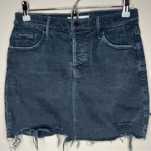 MOTHER The Vagabond Black Mini Fray Denim Distressed Raw Hem Mini Skirt