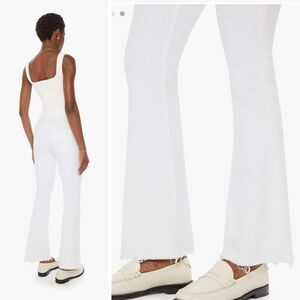 MOTHER The Weekender Fray Flare Jeans Fairest Of Them All White Women's Size 25 Mid Rise.