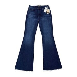 Brush it off. Our most popular mid-rise flare has a 31-inch inseam with a frayed hem. Cut from denim with a touch of stretch, Chip On My Shoulder is a dark blue wash with super subtle fading and whiskering.