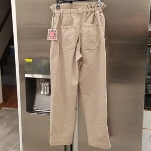 Planting seeds. This wide-leg pant features a ruffled waistband and hits at the ankle. Cut from a lightweight twill in sesame.