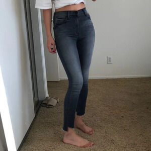 MOTHER The Zip Stunner Two Step Fray Gray Stretcht Jeans Miss Moody Two Shoes 25