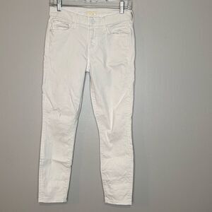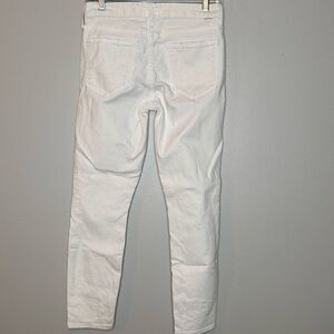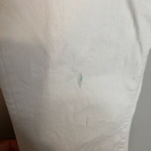Size 27. Stains on the leg and small dots on the butt. These could be dyed a darker color to cover the stains or distressed.