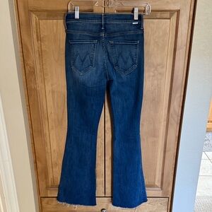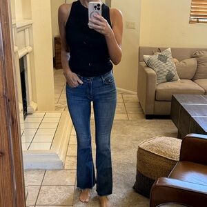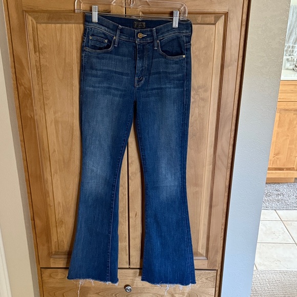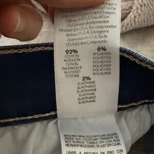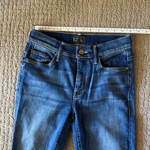 Raw hem. 29 inseam. 9 inch rise. Some stretch.