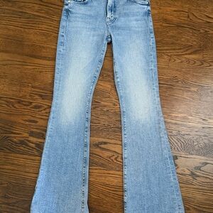 Stylish light blue jeans with a flattering flare. Perfect for casual wear.