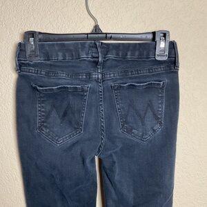 MOTHER Womens 24 Blackbird Looker Ankle Fray Low Rise Black Denim Jeans