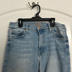 MOTHER Women's The Outside Ankle Chew Light Blue Capri Jeans size 30 boho hippie