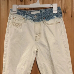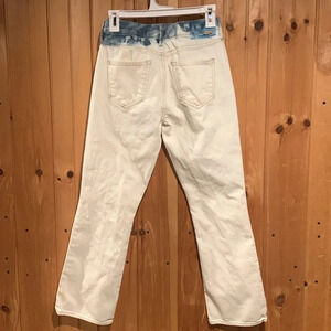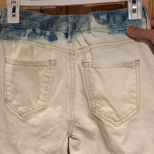 Mother Dutchie ankle jeans in Dante’s garden style. Ombré pattern. No callouts, just a little wrinkled. Brand label on the inside is discolored, could be from original dying process or from being washed previously. Stock photo added for reference from the website.