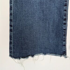 The absolute perfect jean for everything! Gently used but in good condition. Dark denim with frayed hem. Definitely has stretch. Size 25. Measurements pictured.