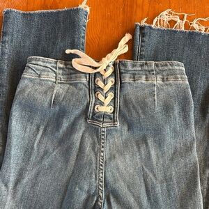 MOTHER laced hustler women’s Blue Ankle Cropped Jeans w Distressed Details sz 24