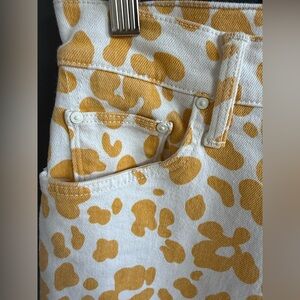 MOTHER the curbside leopard heel Yellow Floral Leopard Print Fray Hem Jeans •27