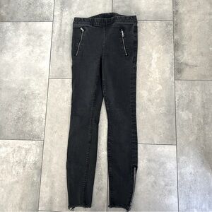 MOTHER the quickie looker ankle fray devil in the making wash 25 black skinny. Zipper ankles. Stretch pull on style. Elastic waist. Rare style. Waist flat is 12 in. Rise is 8.5 in. Inseam is 26 in. 50% modal, 41.5% Cotton, 6% polyester, 2.5% elastane.