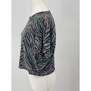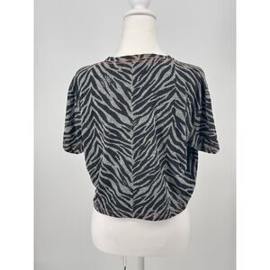 MOTHER graphic tee, zebra print shirt, MOTHER At Your Leisure, animal print cropped tee, designer casual shirt, black gray stripe tee, women’s boxy crop top, street style tee, festival fashion, luxury t-shirt, bold print tee, trendy summer shirt, MOTHER shirt size S