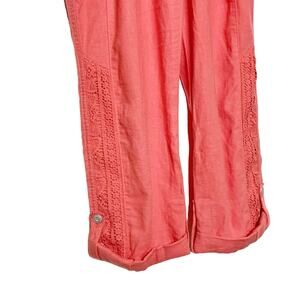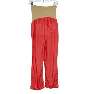 MOTHERHOOD MATERNITY Linen Blend Pants Lace Trim Roll-Tab Hem Coral Pink Size S