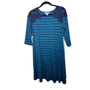 MOTHERHOOD MATERNITY STRIPED T-SHIRT DRESS LACE SHOULDER SIZE MEDIUM
