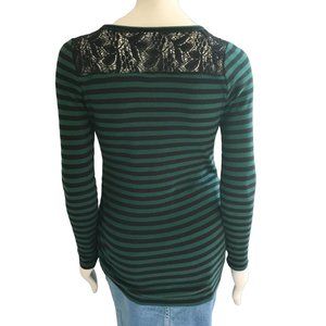 MOTHERHOOD MATERNITY Striped Waffle Thermal Shirt with Lace yoke SZ S