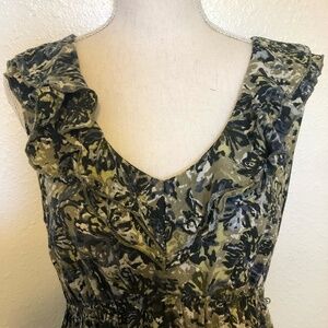 MOTHERHOOD Maternity Dress Women's Size Large Green Floral Print Ruffled V-Neck Multicolor ♡