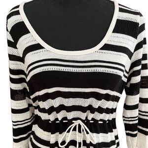 MOTHERHOOD Maternity Babydoll Knit Sweater, black & cream, size M
