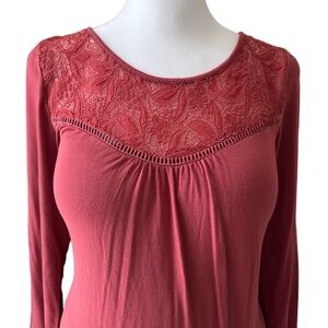 MOTHERHOOD Red Rust Lace Long Sleeve Gathered Front Flowy Boho Maternity Dress M