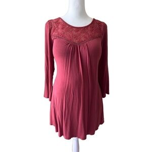MOTHERHOOD Red Rust Reddish Brown Lace Long Sleeve Gathered Front Comfortable Loose Flowy Boho Maternity Dress Size Medium