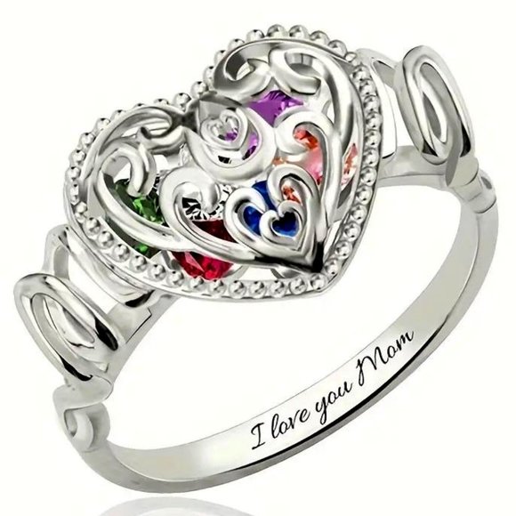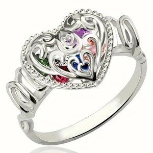 New in original packaging. Pretty sentiment, pretty ring. Silver, size 8, women's filigree heart filled with multi-color CZ stones. MSRP 15.79 USD