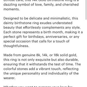 Bought two and this one was the wrong stones. This Mothers Ring represents the birth months of August, September and April. It’s brand new! Please read the pics I posted for more info. This ring was handmade 14k. It’s very delicate and thin. Perfect for small hands and fingers. This is a perfect Mothers Day ring or birthday present! No lowball offers. Paid 250.00.
