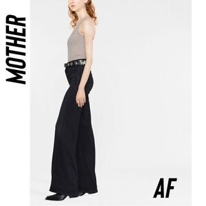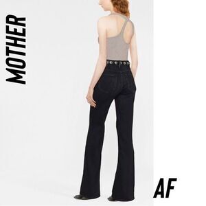 The Hustler high-waisted wide leg jeans from MOTHER featuring midnight blue, cotton blend, high waist, flared, front button and zip fastening, belt loops and classic five pockets.