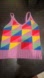 Bright knit tank with geometric design. Features purple, red, blue, yellow, and pink hues.