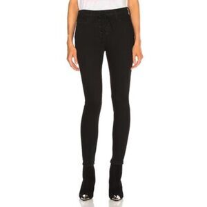 "MOTHER black skinnies are all laced up for a new spin her favorite denim. Non-traditional for the rule breaker at heart."