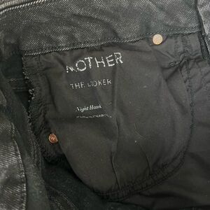 Experience the perfect blend of style and comfort with these MOTHER black skinny jeans. Featuring a sleek silhouette and a subtle faded effect, these jeans offer a modern, polished look. The stretch denim ensures a comfortable fit, making them a versatile addition to any wardrobe. Wash night hawk. Gently worn Mother The Looker jeans. Please look at photos for measurements.