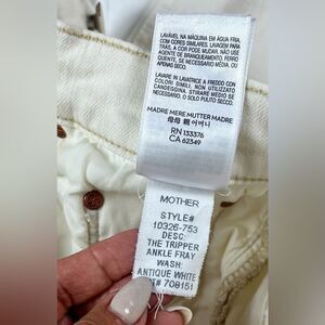 Experience the perfect blend of style and comfort with MOTHER's antique white ankle cropped jeans. These jeans feature a sleek, minimalist design that complements any modern wardrobe. Crafted from premium denim, they offer a crisp and bright appearance ideal for any occasion. See photos for measurements. Gently worn (no stains noted).